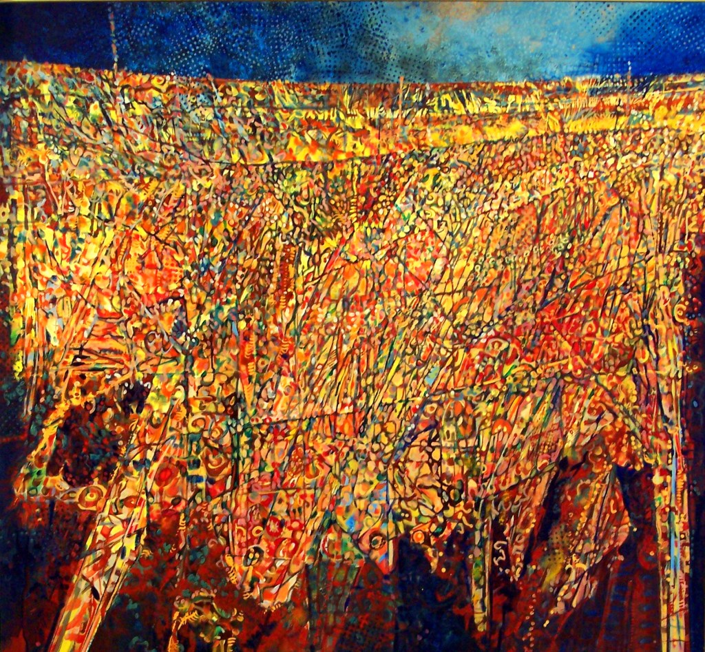 Today, his work is represented in hundreds of private and public collections, ranging from small, select personal collections to the National Gallery of Canada. Major pieces hang in public spaces in his home province, from corporate head offices, country clubs, government of Manitoba lobbies, to the unique circular concrete wall in the underground concourse below Canada’s windiest corner at Portage and Main. More than four hundred feet in circumference, the piece is the largest concrete form created by an artist in Canada.